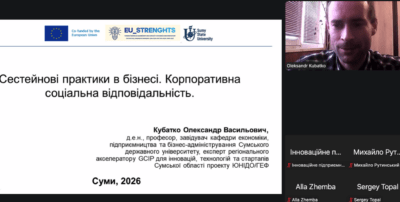 The final training sessions took place amid power outages affecting most regions of Ukraine; however, this did not hinder productive work. During the classes, participants, together with Vitalii Omelianenko, became familiar with the functioning of the European Enterprise Network and the specifics of preparing relevant business proposals. A separate module focused on European practices of sustainable business management was delivered by Oleksandr Kubatko.