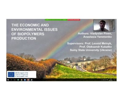 According to the results of the evaluation of works and their defense at the online conference, the the FIRST degree diploma was won by a student of the educational program “Economics and Business” Vladyslav Piven and his coauthor student of the educational program “Entrepreneurship, Trade and Exchange Activities” Anastasia Yaremenko with the research work “The Economic and Environmental Issues of Biopolymers Production” (supervisors – Doctor of Economics, Professor L. H. Melnyk and Doctor of Economics, Professor O. V. Kubatko).