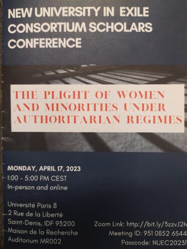 Iryna Sotnyk, Professor of the Department of Economics, Entrepreneurship and Business Administration, took part in the international scholars conference “The plight of women and minorities under authoritarian regimes”, which was held online and in-person on April 17, 2023, at the University Paris 8, Paris, France. The New University in Exile Consortium, which brings together institutions of higher education providing shelter to scholars fleeing war or persecution, initiated the conference. During the event, the impact of the authoritarian regimes causing wars, migration of population and changes in everyday life and work on the activities of scientists in the countries, exposed to that impact, was discussed, namely, in Afghanistan, Ukraine, Syria and others. The particular attention was paid to the rights of women and minorities, as well as solidarity and social security issues. Iryna Sotnyk participated in the discussion and presented her view on the impact of the war on scientific activities in Ukraine and the development of solidarity and social economy. She shared her research results obtained under performing the Jean Monnet Module project “Social solidarity economy: implementation of EU experience for sustainable development” (SSExpEU – 101047518 – GAP-101047518) (2022-2025) with colleagues from other countries and discussed issues related to supporting the scientific community during crisis situations.