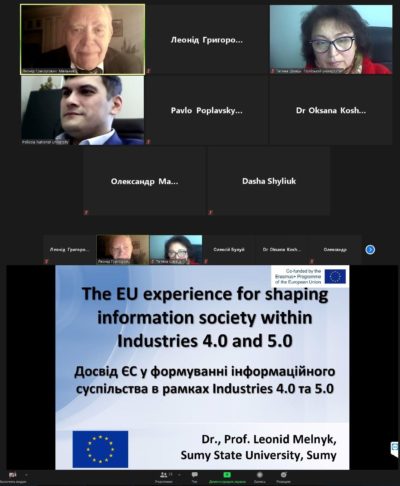 14.12.2021 Doctor of Economics Leonid Melnyk, Professor of the Department of Economics, Entrepreneurship and Business Administration (EEBA) at Sumy State University (SSU), Director of the Research Institute for Development Economics of the Ministry of Education & Science and the National Academy of Sciences of Ukraine started a series of lectures on “EU experience in shaping the information society in line with Industries 4.0 and 5.0”.