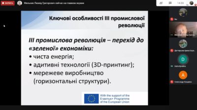 04.12.2020 відбулась лекція д.е.н., професора кафедри економіки, підприємництва та бізнес-адміністрування СумДУ, директора Інституту економіки розвитку МОН та НАН України для студентів-магістерської програми «Підприємництво, торгівля та логістика» (гр. ПТЛ.м-01). В рамках дисципліни «Конкурентні стратегії» було додатково прочитано змістовний модуль «Малі та середні підприємства та стартапи в ЄС в умовах Індустрії 4.0 та 5.0». Презентація модуля та лекції відбулась в рамках виконання проектів Ж.Монне (рівень кафедри), які наразі виконуються на кафедрі: «Законодавчий, екологічний та соціальний перехід ЄС до сестейнового суспільства в межах Індустрій 4.0 та 5.0» (619997-EPP-1-2020-1-UA-EPPJMO-CHAIR) та «Економічна політика ЄС та громадянське суспільство» (619878-EPP-1-2020-1-UA-EPPJMO- CHAIR).