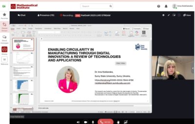 20 жовтня 2025 року доцентка кафедри економіки, підприємництва та бізнес-адміністрування Сумського державного університету, к.е.н. Інна Коблянська представила результати дослідження «Enabling Circularity in Manufacturing through Digital Innovation: A Review of Technologies and Applications» на 7-й Міжнародній віртуальній конференції Path to a Knowledge Society – Managing Risks and Innovation (PaKSoM 2025).
