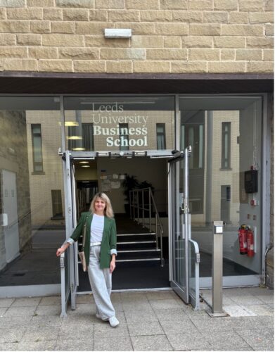 Доцентка кафедри економіки, підприємництва та бізнес-адміністрування, Інна Коблянська, представила діяльність Сумського державного університету та кафедри під час візиту до Бізнес школи Університету Лідса (Велика Британія) 26 вересня 2025 р.
